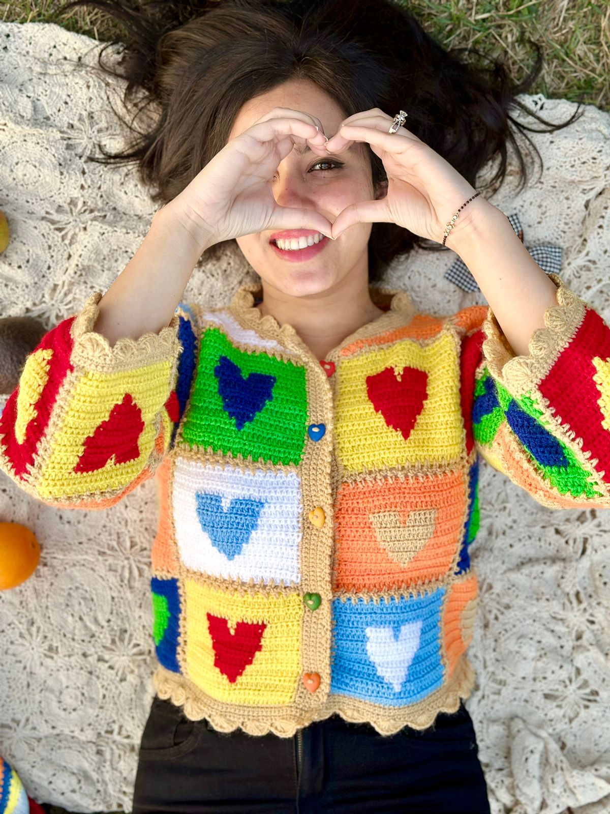 • Colorful Heart Motifs: Each cardigan features adorable heart patterns, symbolizing love and positivity.