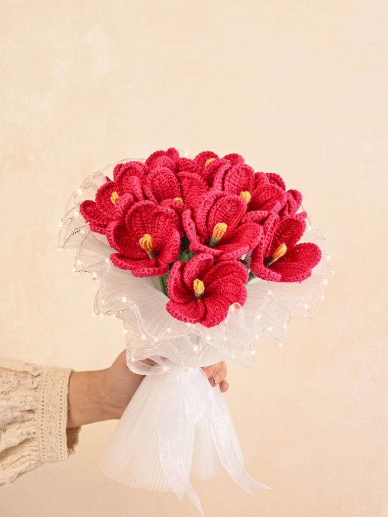 A bunch of 10 hot pink tulips, wrapped in a warm glow of lights, captures the essence of true love. With 4 adjustable light settings, this arrangement blends elegance and romance—making it an ideal gift for someone special. You also have the option of ordering the flowers as a bunch with the vase.