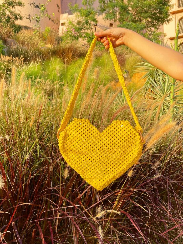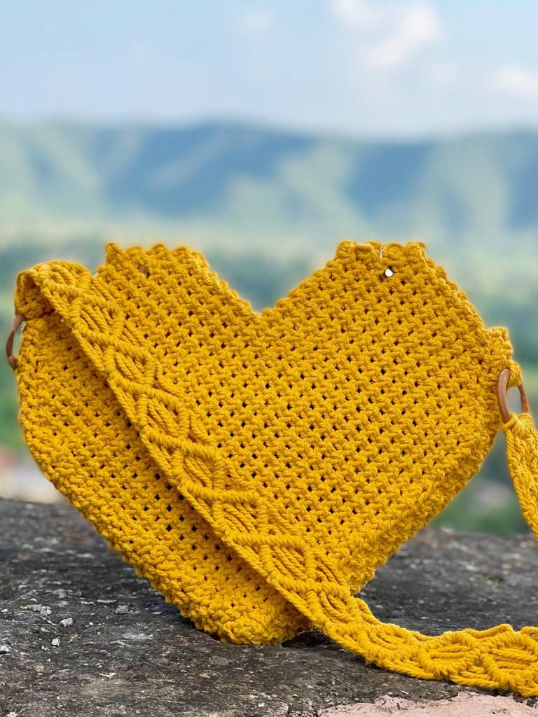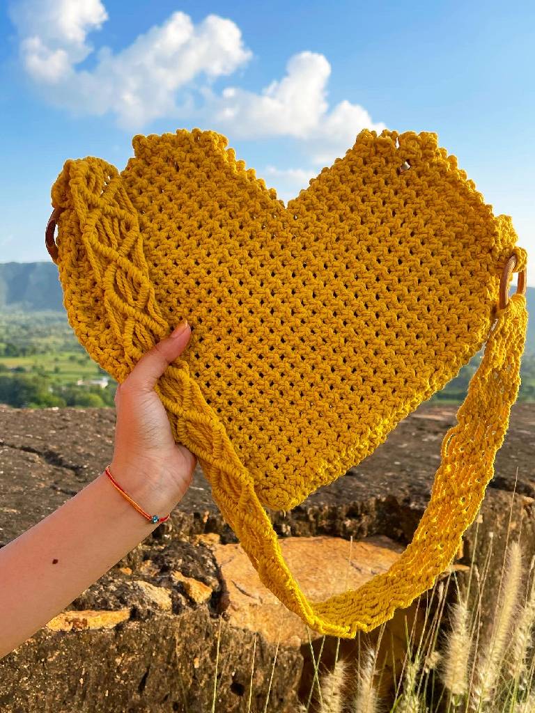 Fall in love with our stunning Macrame Heart Shaped Bag. Handcrafted by skilled artisans, this unique bag is made with high-quality cotton macrame and features a heart-shaped design that will add a touch of romance to any outfit. With a spacious interior, this bag is perfect for carrying all your essentials while looking stylish. Whether you're heading out on a date or a night out with friends, this bag is sure to make a statement.