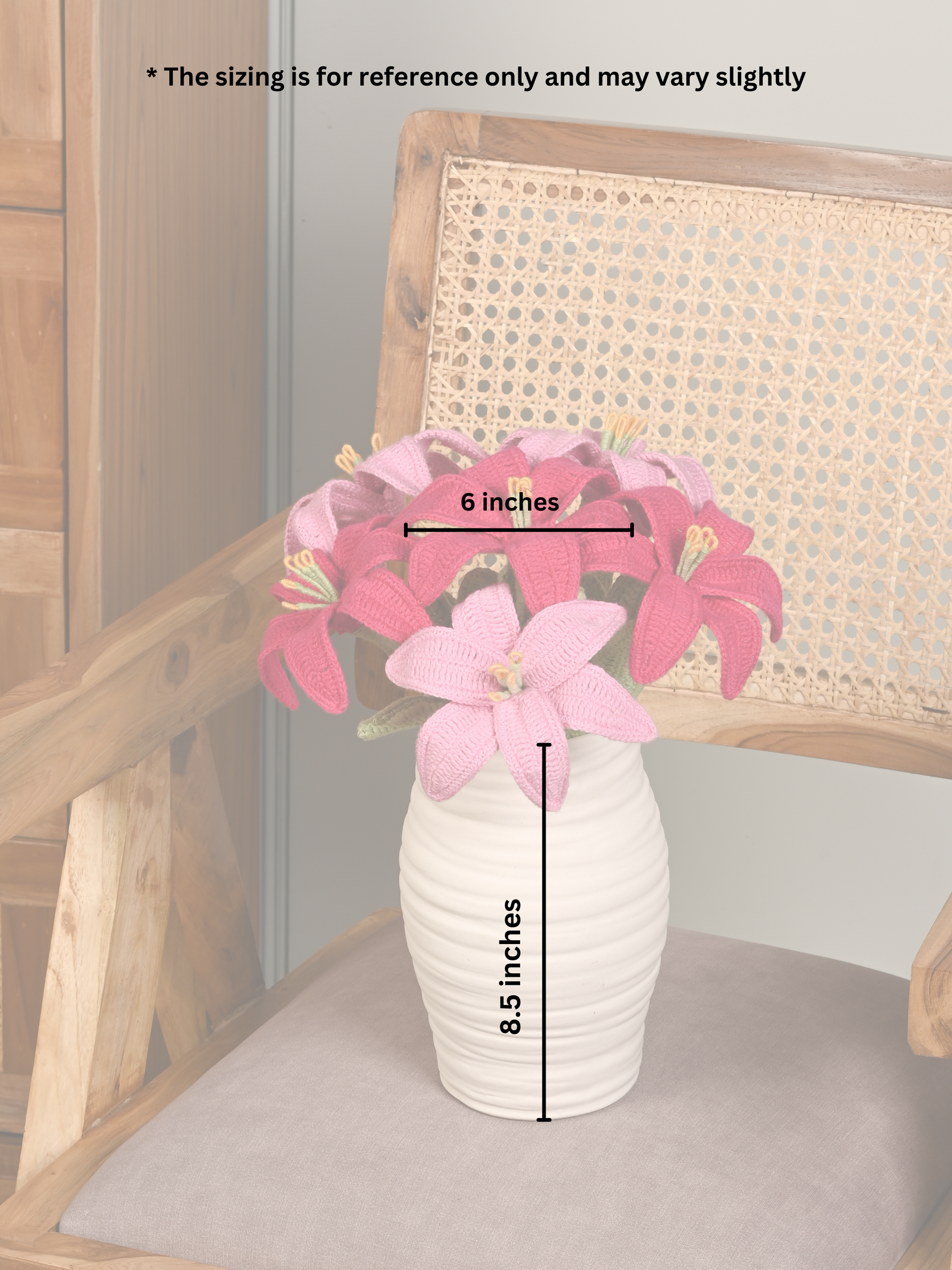 Lily Blooms features a beautiful blend of 3 red and 3 pink lilies in a vase. Perfect for when you want to say it all without saying a word. A combination that feels like a hug in bloom!