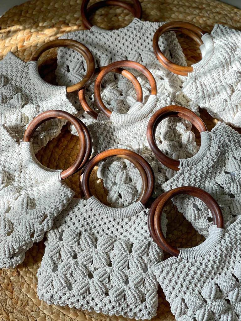 Introducing our Macrame Sleek Baguette with Beautiful Handles, a must-have accessory for any fashion-forward individual. Handcrafted with high-quality cotton macrame, this bag features a sleek and modern design that will complement any outfit. The beautiful handles add a touch of elegance to the look, while the spacious interior can hold all your essentials. With an adjustable strap for comfortable wear, this bag is perfect for a day out or a casual evening. Whether you're running errands or attending a social event, this bag is sure to make a statement.