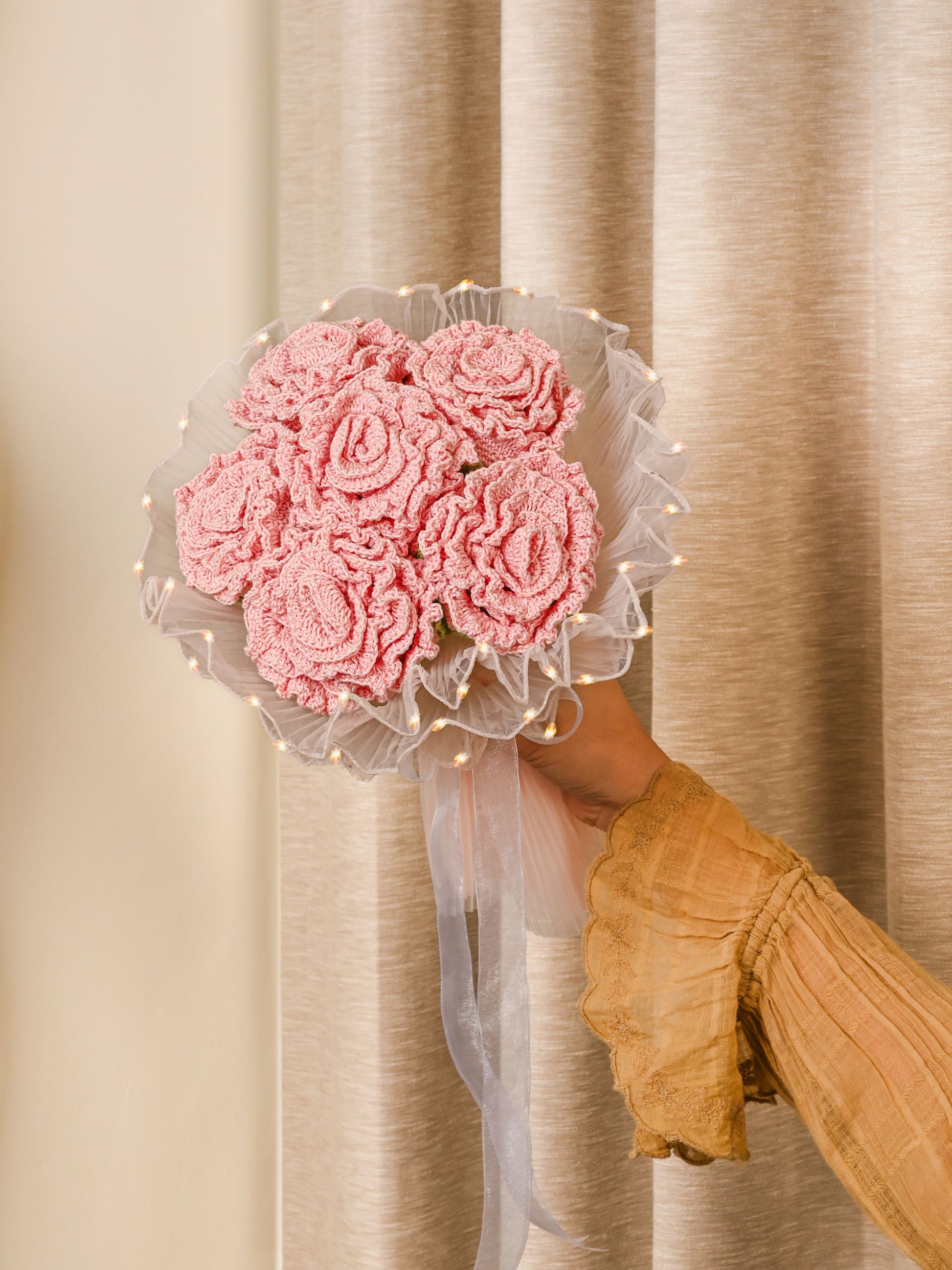 This arrangement of six baby pink roses wrapped in a glowing white sheet of lights or placed in a vase, radiates tenderness with every petal. Delicate, dainty, and full of heart—it's the perfect pick for gentle celebrations, quiet love, and everything beautifully in-between.