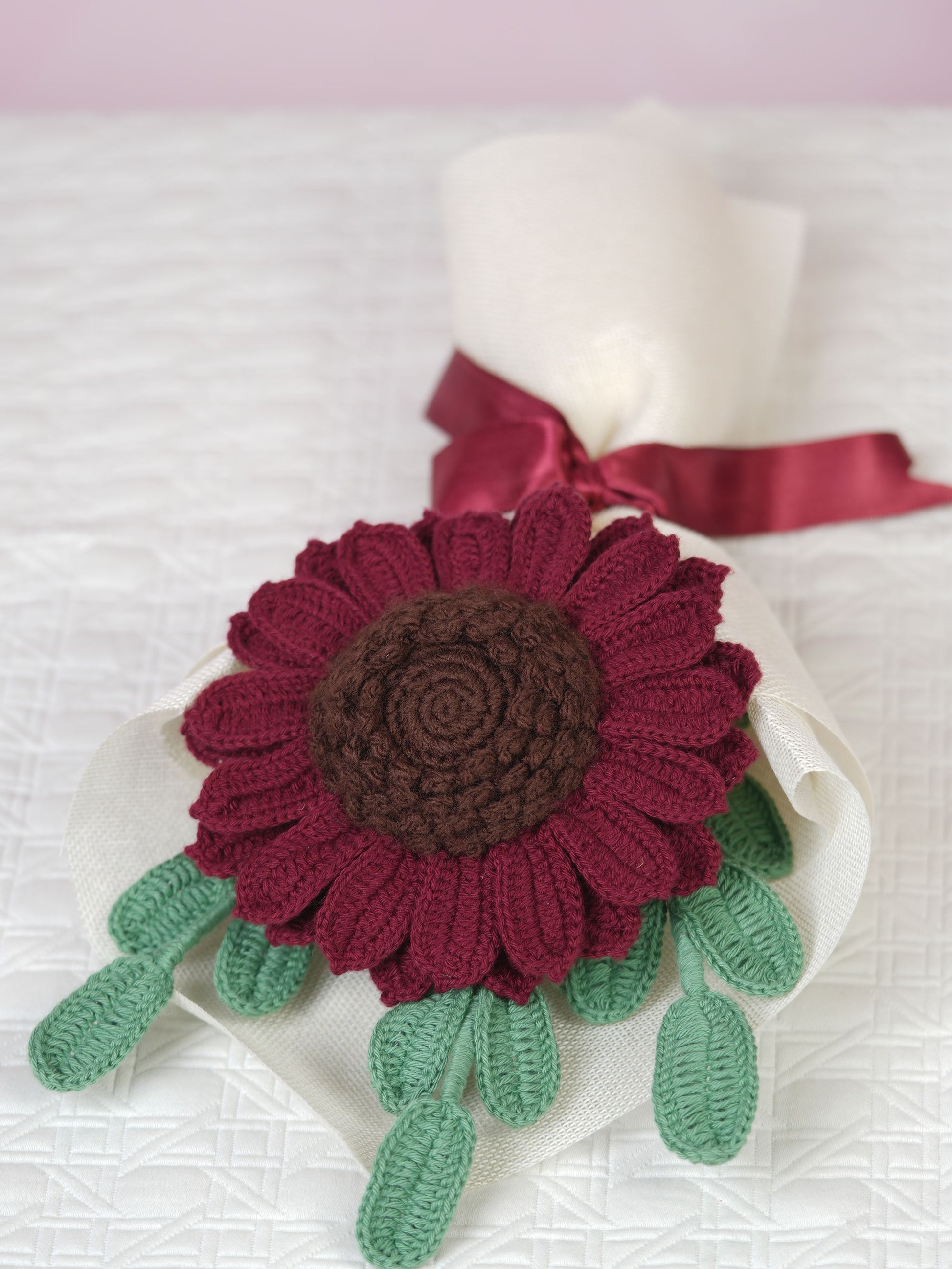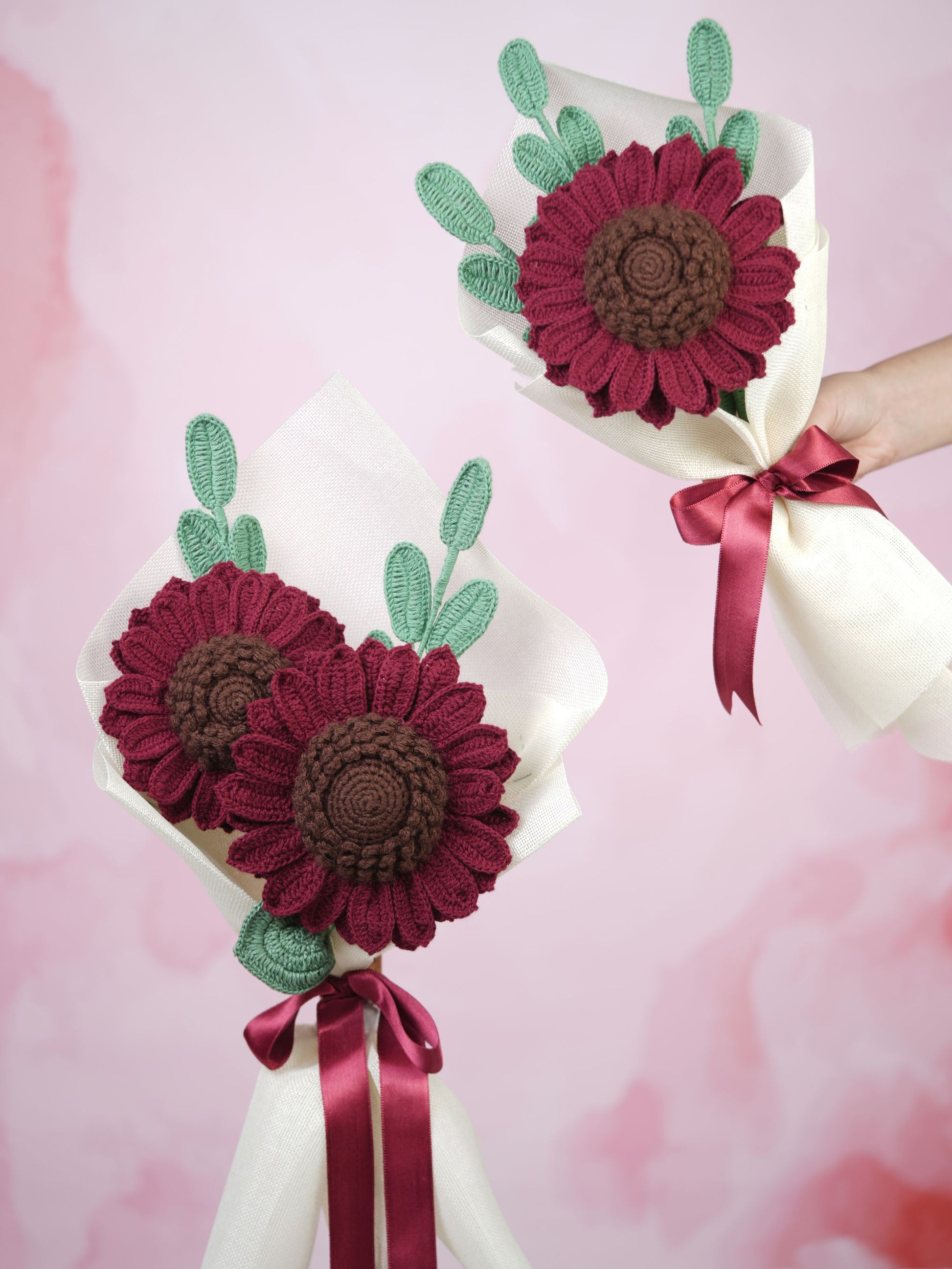 This bouquet features striking maroon sunflowers paired with leaf sticks, wrapped in a crisp white sheet for a stunning contrast. Unconventional and one of a kind, it’s made for those who love their florals a little different; rich, radiant, and impossible to ignore.