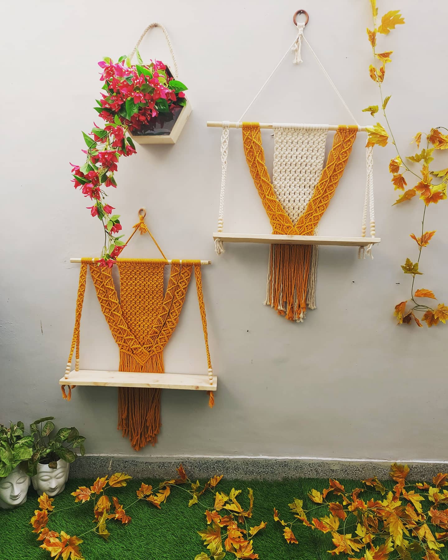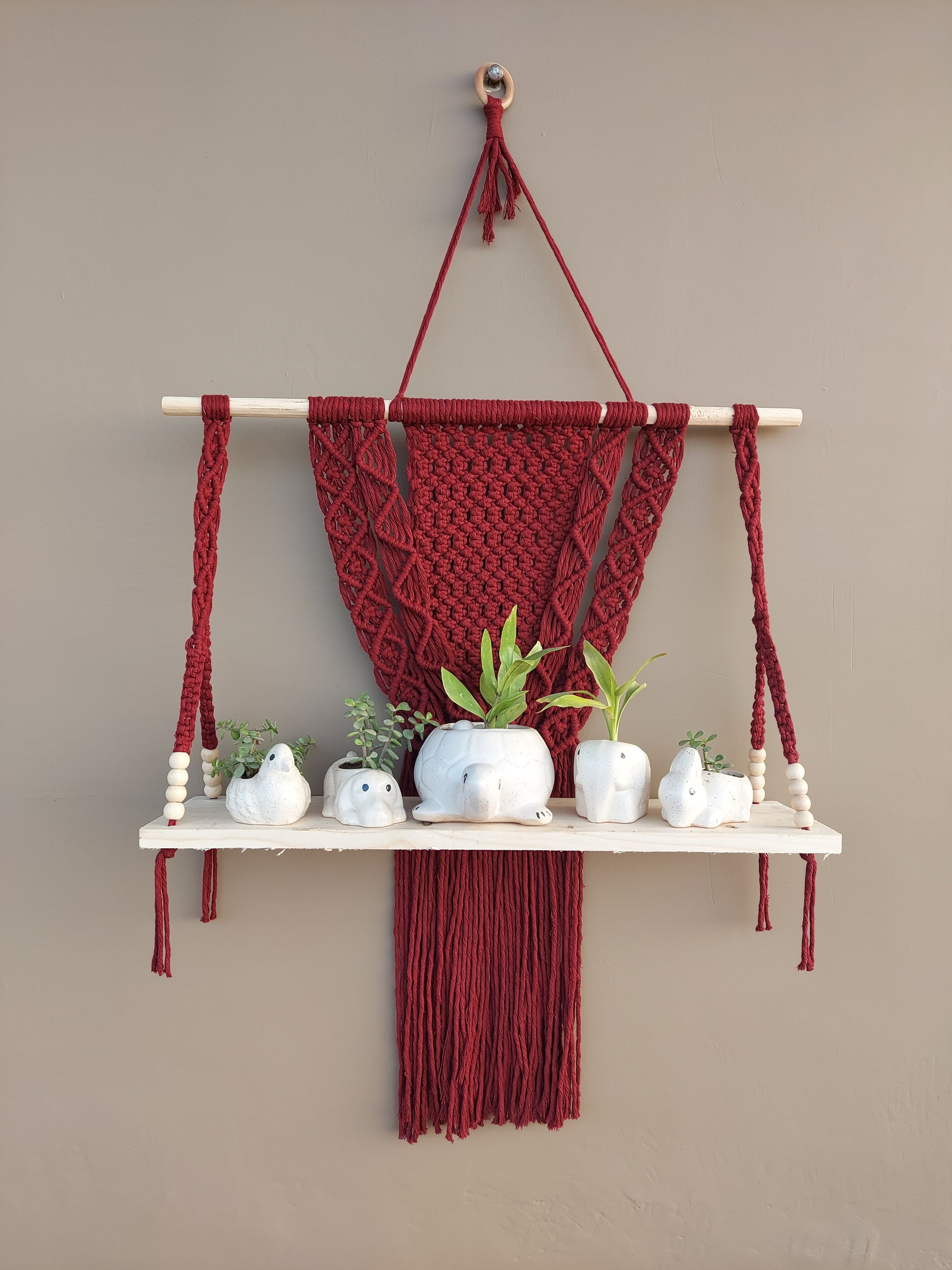 This Shelf is handcrafted with precision using premium cotton macrame. The best part about it is its mobility, allowing you to hang it in any desired location. This comes with a strong and wide wooden base which serves as a platform for displaying multiple things including planters, candles, or various decor items simultaneously.