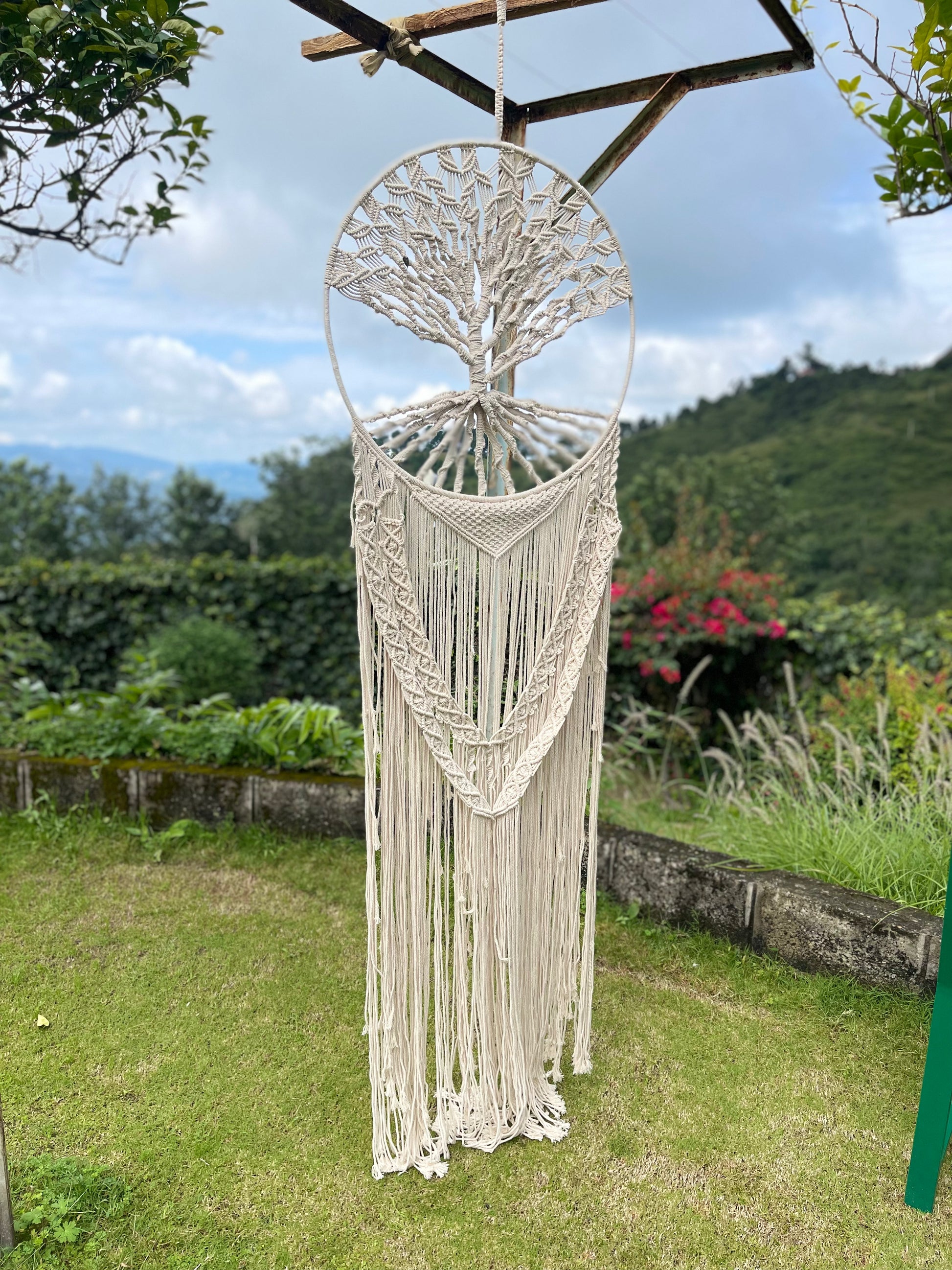 Our Tree of Life Wall Hanging has been specially designed to evoke a spiritual ambiance. It gives out a relaxed and comforting vibe, especially because of the subtle choice of colours. This piece is well-suited for meditation rooms or even semi-outdoor settings like balconies.